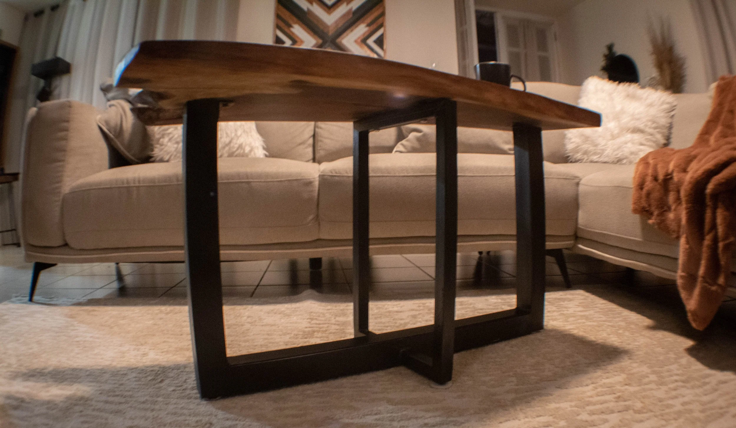 Coffee table hand-crafted with Maga slab. Maga, endemic to Puerto Rico, its hard wood takes on a beautiful reddish tone. The color coupled with the shape of the slab can represent the heart of the household.